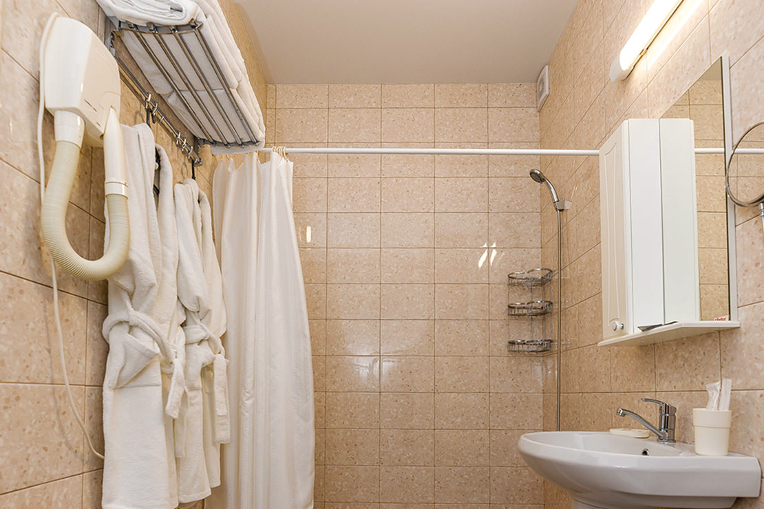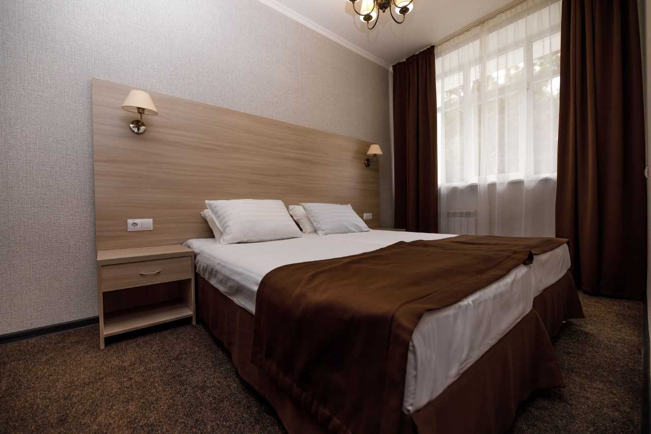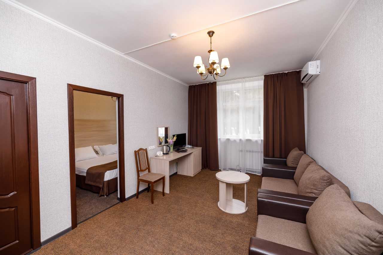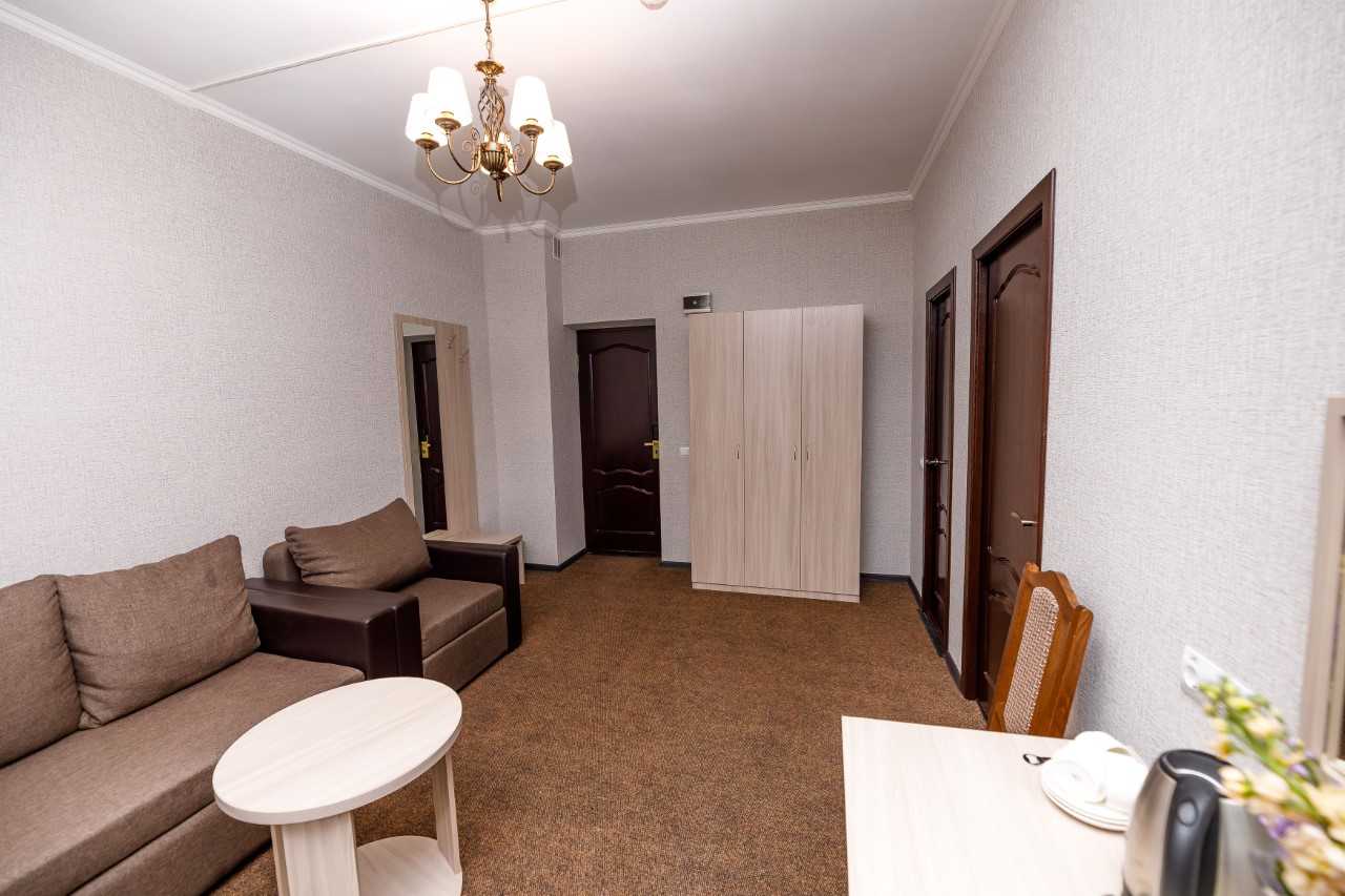 Площадь номера - 30-32 кв.м. 2 осн. места. 3 доп. места. Балкон. Мебель: вешалка, диван раскладной, зеркало, ковровое покрытие, кресло-кровать (2), кровати односпальные /одна двуспальная кровать, прикроватные тумбочки, столик журнальный, столик туалетный, стул, шкаф. Оборудование: мини-холодильник, сейф, сплит-система, телевизор, телефон, чайный набор посуды, электрочайник. Санузел: с душем, туалетные принадлежности, фен. Сервис: Wi-Fi бесплатно, смена полотенец, смена постельного белья, уборка номера, услуги телефонной связи по территории отеля.